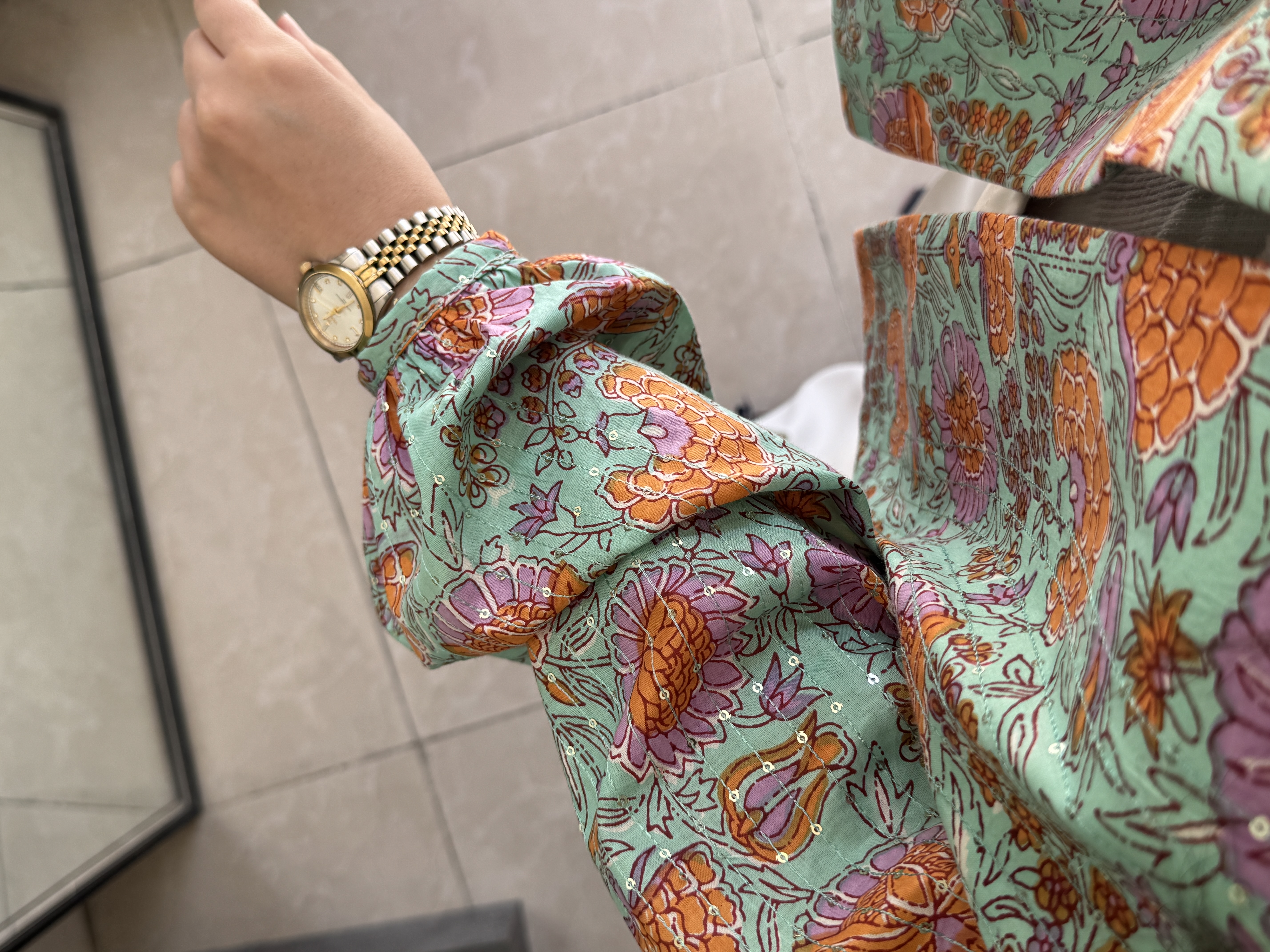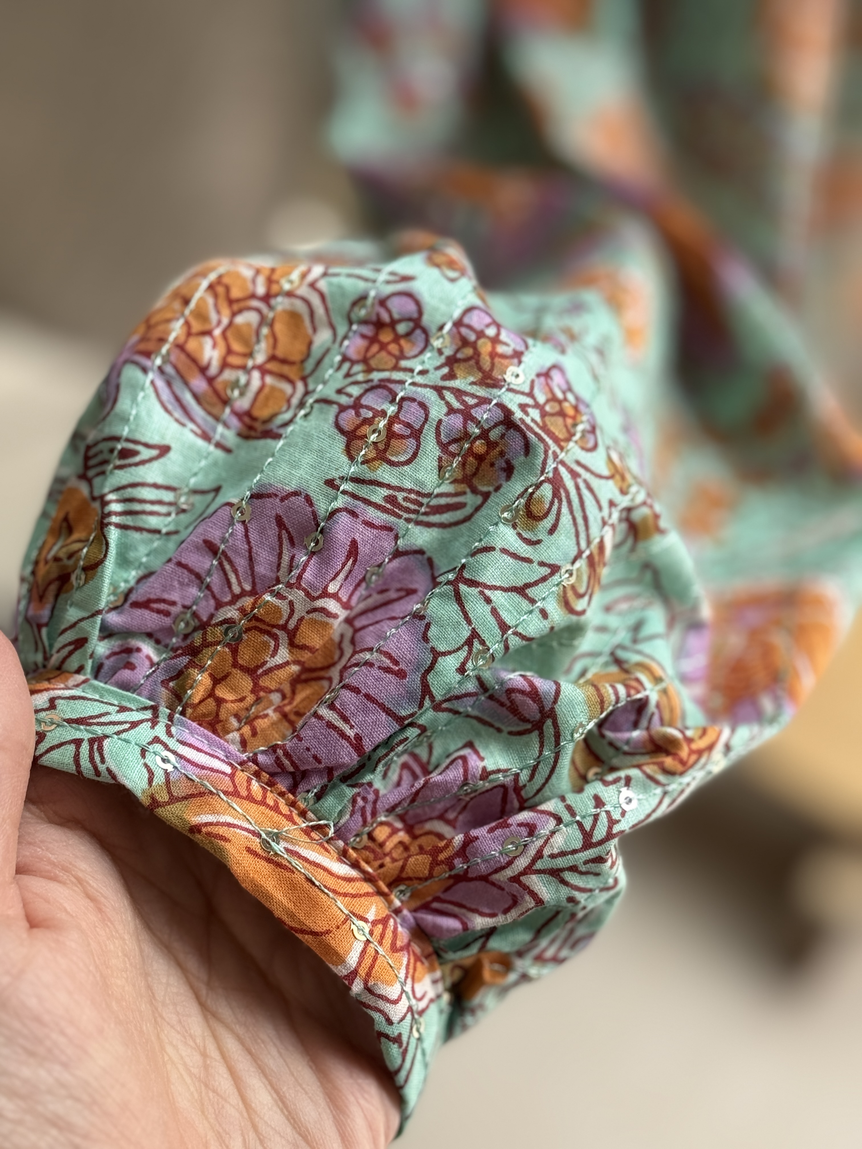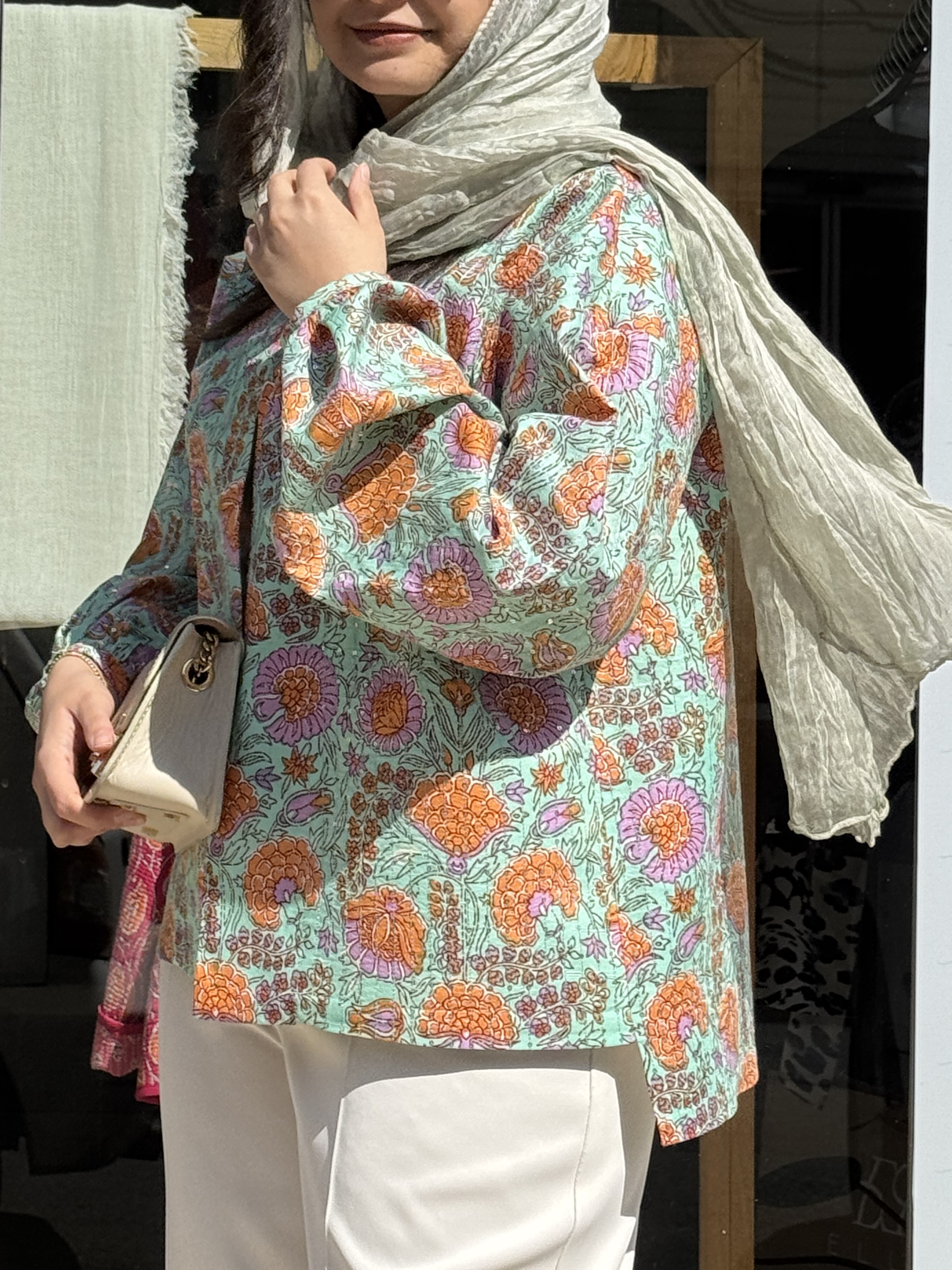 دستهبندی: کتجنس: باتیک پولک دوزی(تماما لایی کوبی شده)سایز: فری تا 44رنگ: نعنایی صورتی نارنجیقد: قد پشت 67 - قد جلو 61